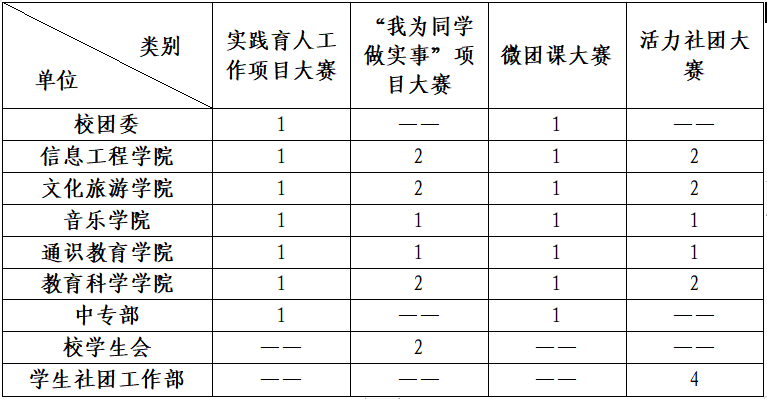 本次校内初赛包含实践育人工作项目大赛、“我为同学做实事”项目大赛、微团课大赛、活力社团大赛四类主题,具体要求如下: