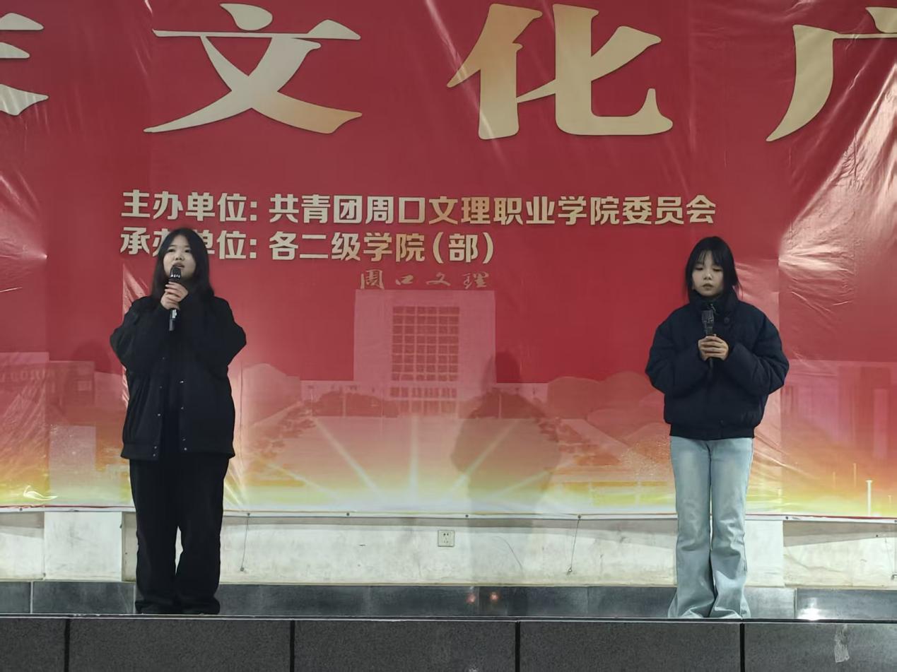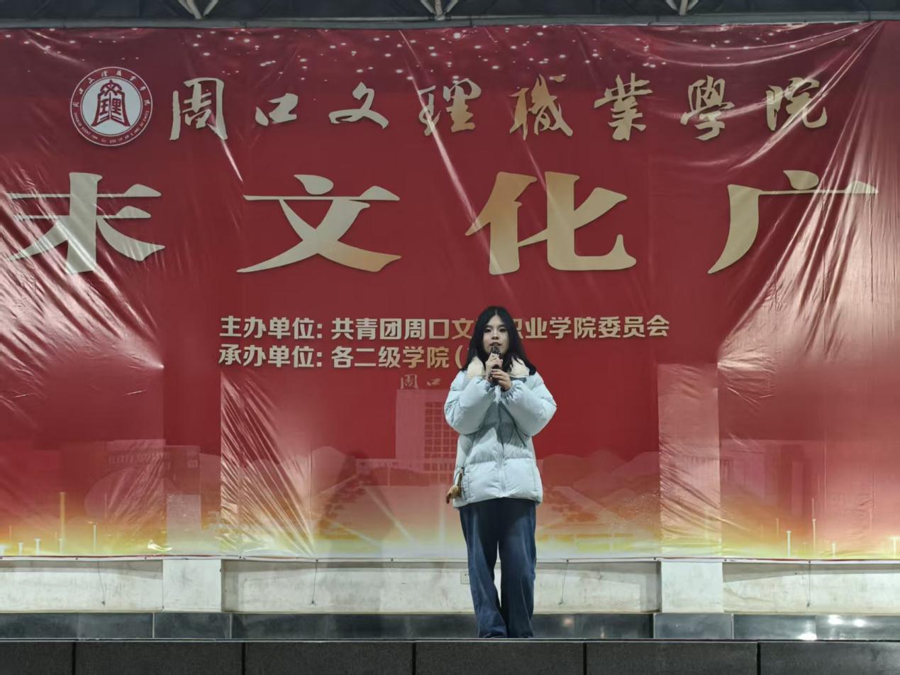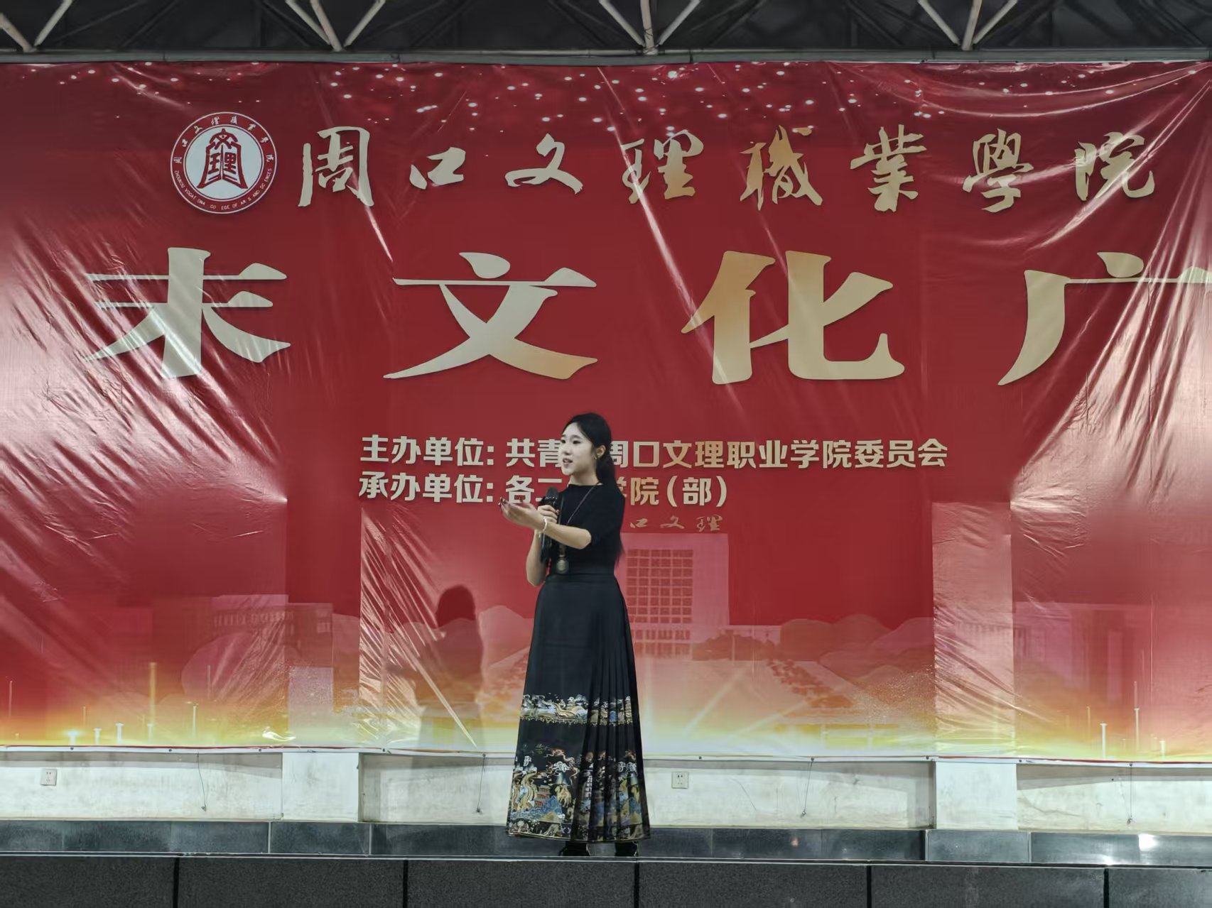 2025年11月14日晚,周口文理职业学院2025年度周末文化广场第七场(总第14场)文艺汇演在全新升级的校园舞台精彩上演。这场由通识教育学院与中专部联合打造的文艺盛宴,通过15个精心编排的节目,充分展现了我校青年学子多才多艺、奋发向上的精神风貌。