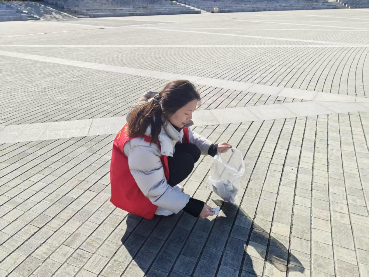 志愿者们扛着志愿者旗帜,忙碌的身影与公园的绿意相映成景,成为一道亮丽的“青春风景线”。活动现场,志愿者们身着统一服装,手持清洁工具,分成若干小组,分工协作、默契配合。