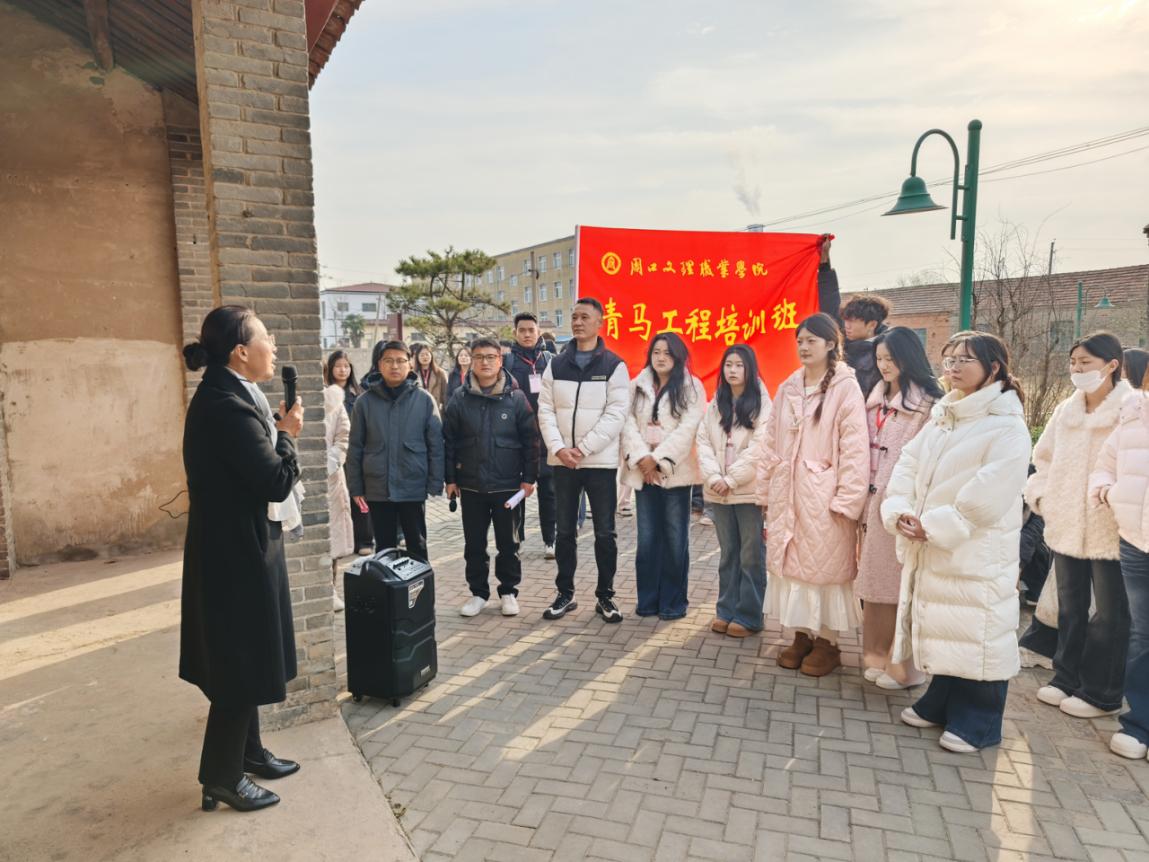 2025年12月9日,国家计委西华五七干校旧址庄重而温暖。周口文理职业学院2025年度“青年马克思主义者培养工程”培训班第八讲实践教学暨结业仪式在此隆重举行。校团委书记王东伟、马克思主义学院院长李翔、校武装部部长杜春晖出席活动,与青马班学员、青年马克思研习会社代表、天鹰军事社代表等100多名同学共同踏上红色寻根之旅,见证青春信仰的力量。