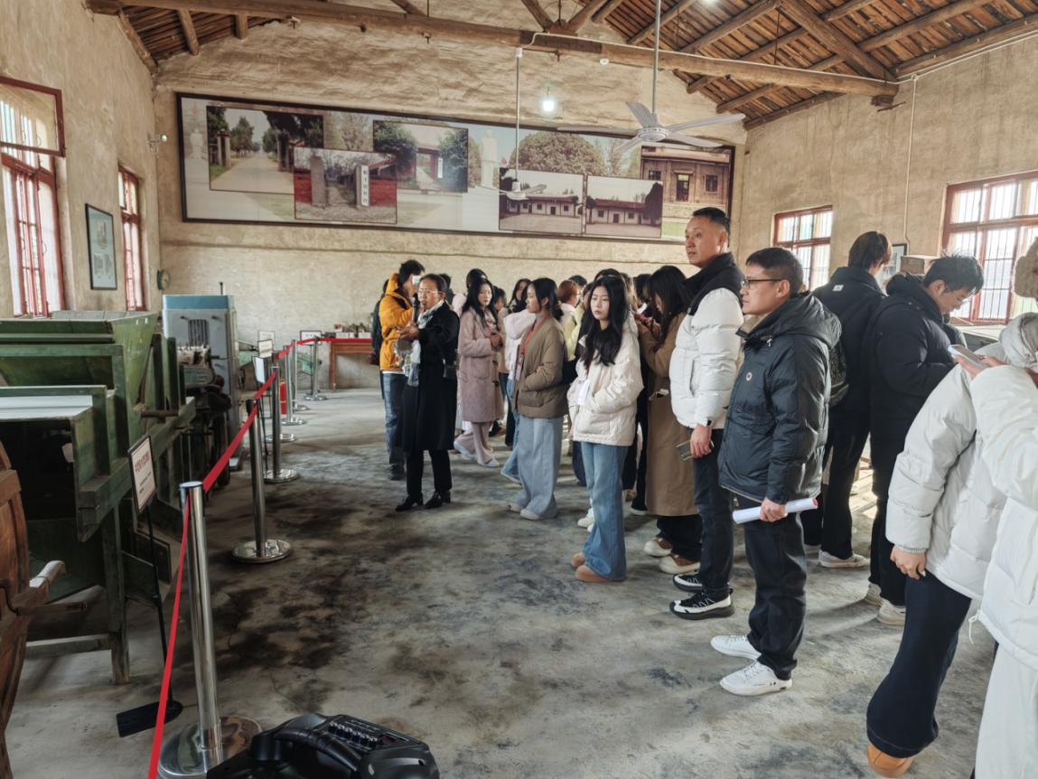 冬日暖阳洒在古朴的建筑上,历史的回响清晰可闻。在讲解员的引领下,学员们开启了一场沉浸式的实践教学。从简朴的起居室到充满讨论声的接待间,从摆放着老式工具的工作坊到书香弥漫的阅览室,每一处陈设、每一件实物都在无声讲述着那段艰苦创业、求真务实的岁月。学员们认真聆听、细致观摩、低声交流,在跨越时空的对话中,深刻体悟老一辈革命者坚定的理想信念与扎实的工作作风,红色基因在目光与触碰中悄然传承。
