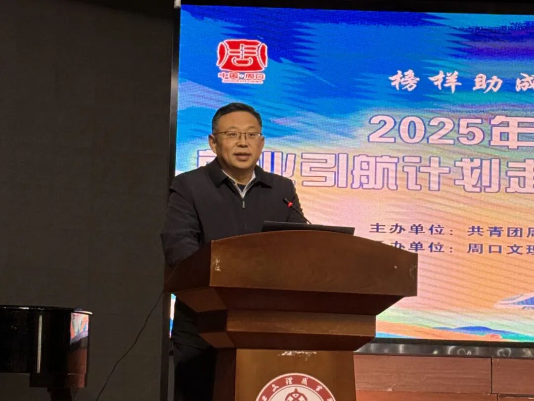 为深入学习贯彻党的二十届四中全会精神,全面贯彻落实习近平总书记关于青年工作的重要思想,积极响应中央、省、市关于稳就业促发展的号召,引导广大青年学子树立正确的就业观、创业观,2025年12月24日,由共青团周口市委主办的“榜样助成长 青春向未来——2025年港城青年说暨就业引航计划”走进周口文理职业学院。活动在我校演播厅举行,校党委副书记皇甫超出席并致辞,团市委四级调研员孙娜、我校相关部门负责同志、各二级学院团学工作负责人、学生代表等共同参与。活动由校团委书记王东伟主持。