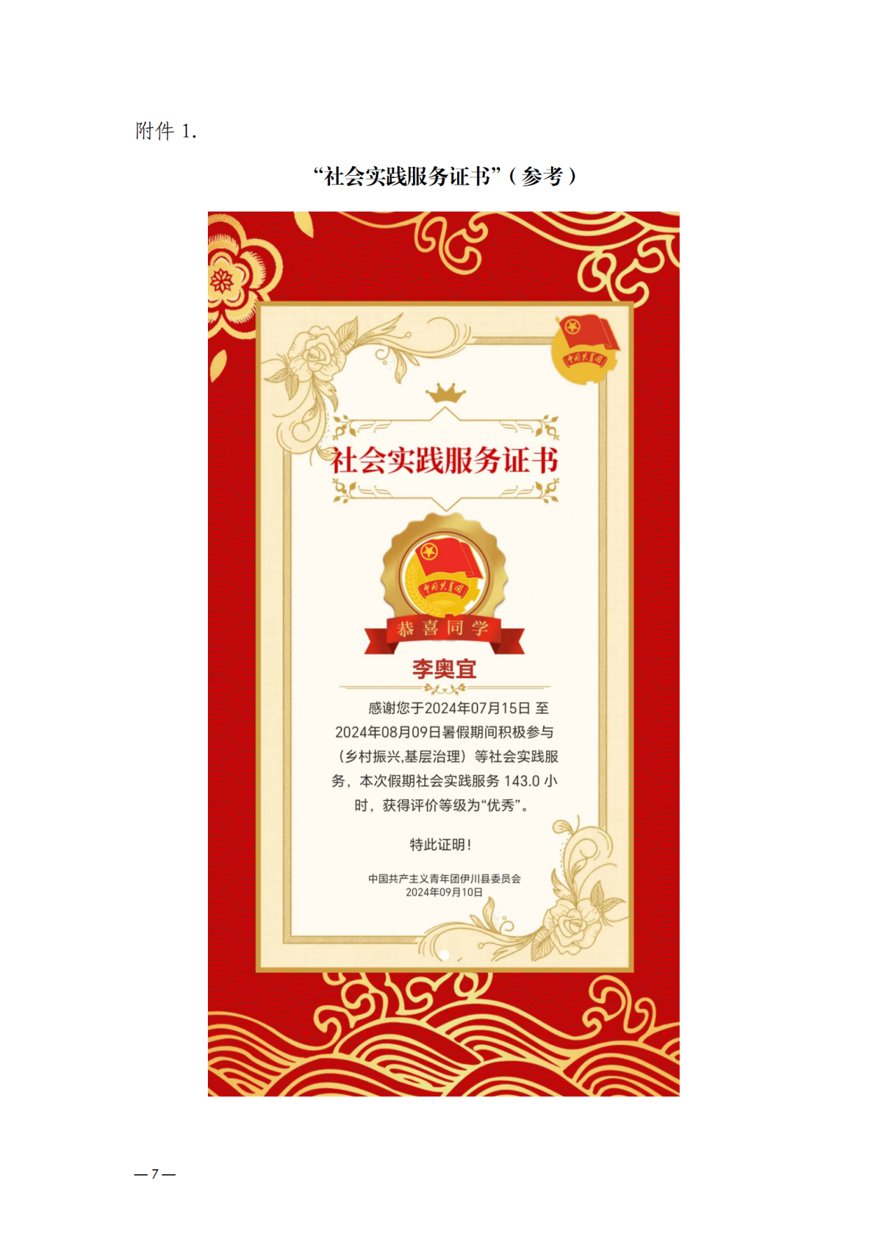 1.“社会实践服务证书”(参考)