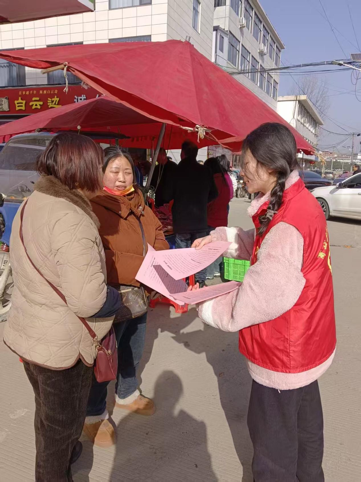 1月19日至2月28日,教育科学学院24级早期教育1班学生王昌晶在商城县观庙镇人民政府参与公益服务。她顶着寒风开展街道集中整治,规范车辆停放、清理占道摊位,保障春节期间集镇道路畅通;同时,她深入街头巷尾,用家乡话向居民宣传防范非法集资、反诈和反邪教知识,并耐心为老人讲解常见骗局。她的真诚和实干让乡亲们对新时代大学生有了更深刻的认识。王昌晶说,这次实践锻炼了她的沟通能力,让她从“被服务者”转变为“服务者”,收获了强烈的社会价值感,也为她理解基层、服务社会打下了坚实基础。