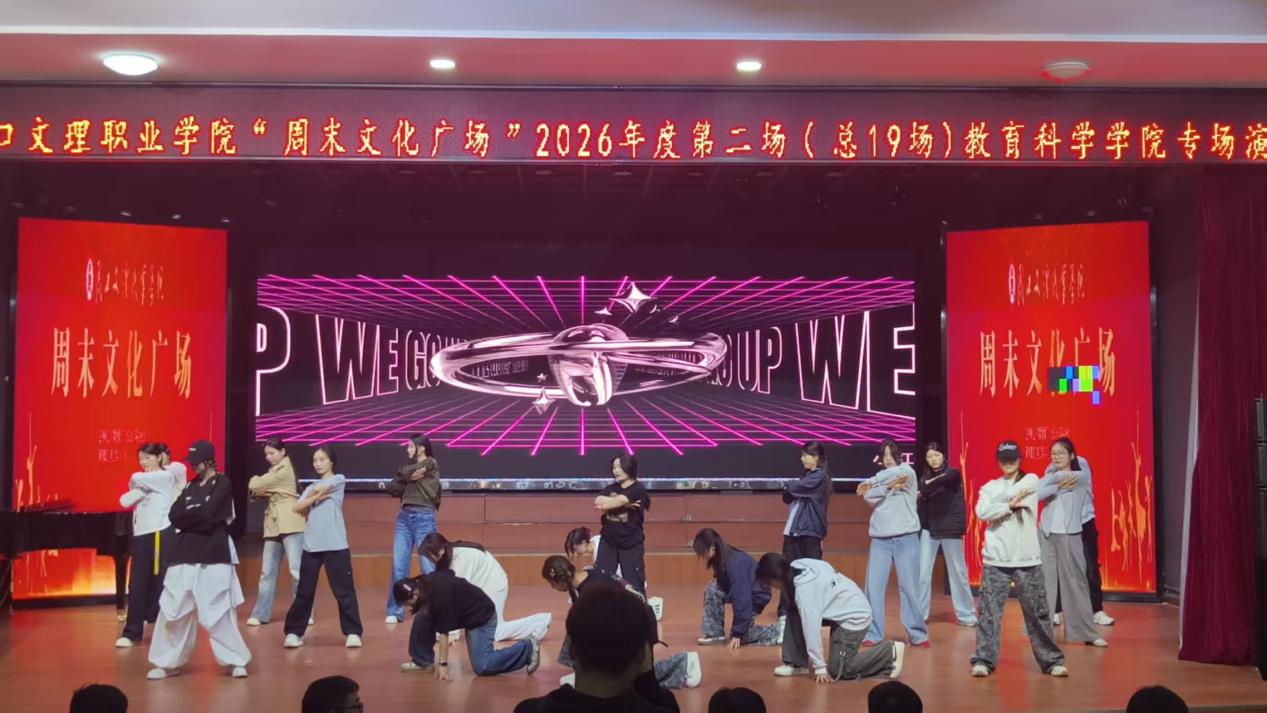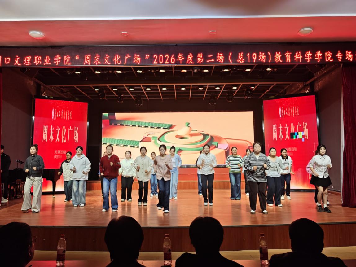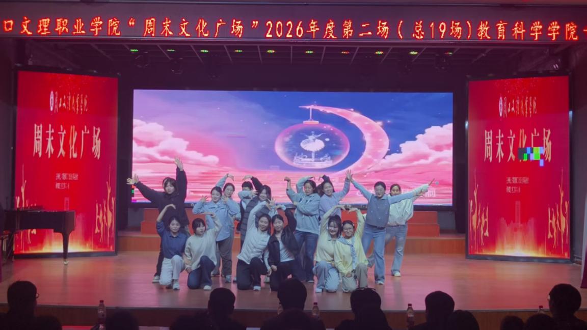 春日暖校园,青春正当时。2026年3月27日晚,周口文理职业学院“周末文化广场”2026年度第二场(总第19场)教育科学学院专场演出在演播厅精彩上演。本场演出以“青春逐光起舞,文艺共谱华章”为主题,通过歌舞、朗诵、啦啦操等多元艺术形式,尽情展现教科院学子的蓬勃朝气与无限可能。